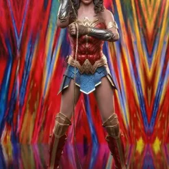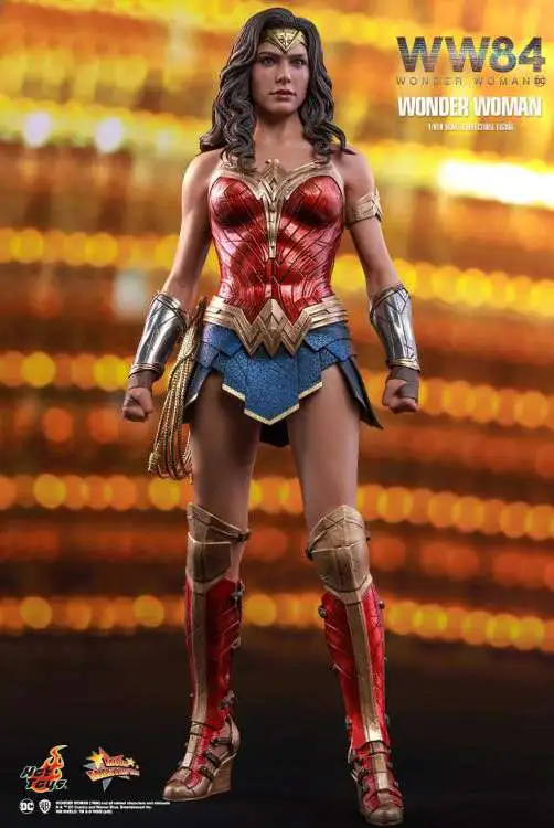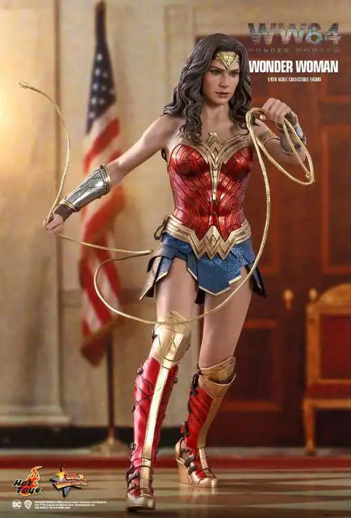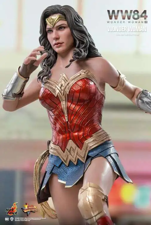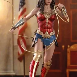 Hot Toys is very excited to present the new sixth scale Wonder Woman collectible figure capturing the warrior princess down to the finest details. Beautifully crafted based on the appearance of Gal Gadot as Diana Prince/ Wonder Woman in the movie, the figure features a newly developed head sculpt with an astonishing likeness and long curly dark brown hair sculpture, Wonder Womans signature tiara, a specialized body tailored with enhanced articulation on shoulders, Wonder Womans iconic blue and red battle suit, a pair of Wonder Womans signature Bracelets of Submissions, her Lasso of Truth, sparkling effect accessories in different sizes, and a figure stand.