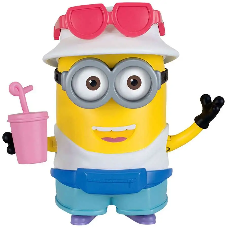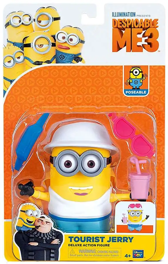 Despicable Me Deluxe Tourist Minion Dave Action Figure Tourist Dave Minion deluxe action figure. Go touring with Minion Dave. He’sdressed in tourist outfit with hat, sunglasses and soda cup accessory.Articulated shoulders. Stands approximately 4.75″ tall.