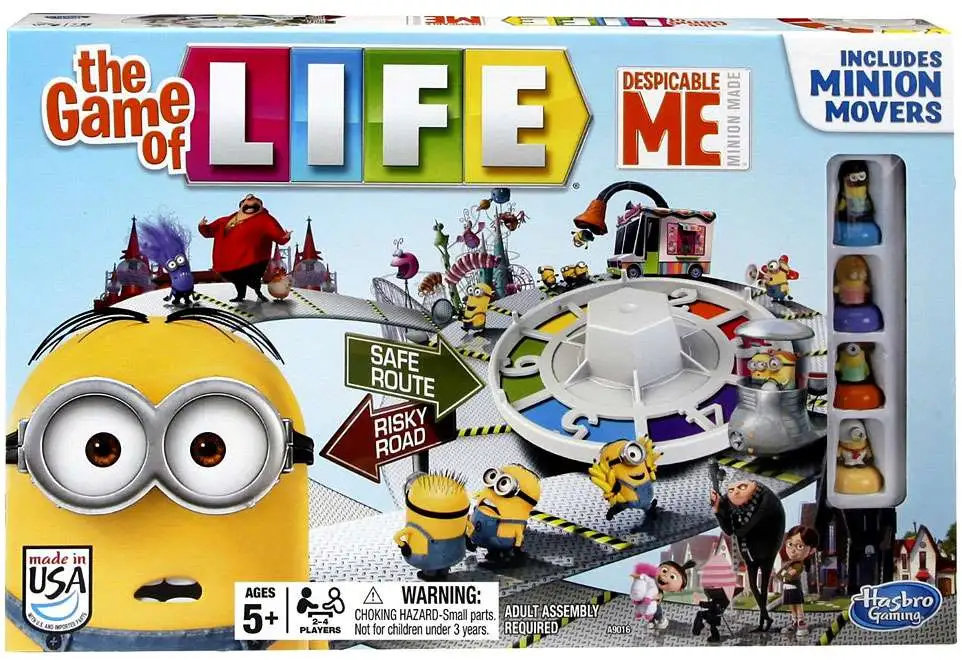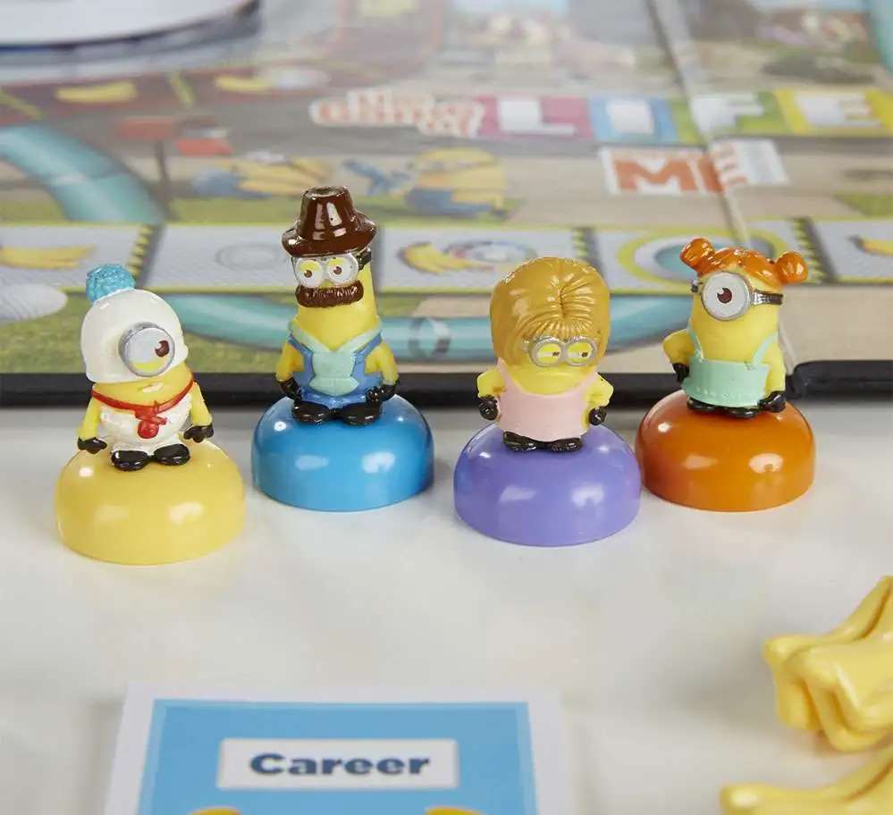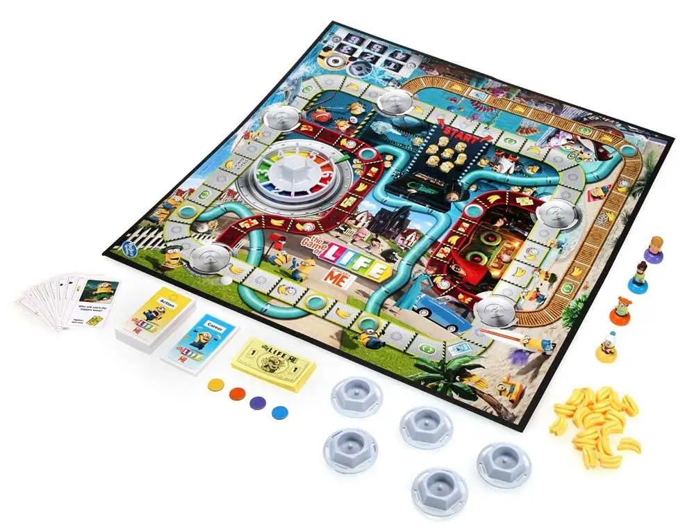 Play The Game of Life with Despicable Me minions! Just choose your Minion, choose a job, and let the adventure begin. You’ll sing at Gru’s wedding, steal the Moon, and other wacky escapades – but watch out for the evil Minions as you try to bag 5 bunches of bananas! The mini-spinner might send you in an unexpected direction, but you can always get sneaky and slide through a tube to a new space. Will you beat the others to it… or will they steal your loot? You’ll find out when you play the Despicable Me version of The Game of Life!