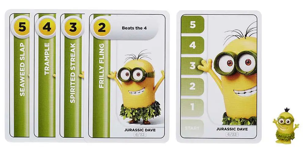 Its game on for minion-against-minion action in the Minions Challenge Card Game! Each one of these hilarious Minion characters comes with 5 cards and a game guide. Deploy your battle cards against your opponent and keep playing until your Minion reaches the top of his score card first to win!Includes Minion character, 5 cards and game guide.