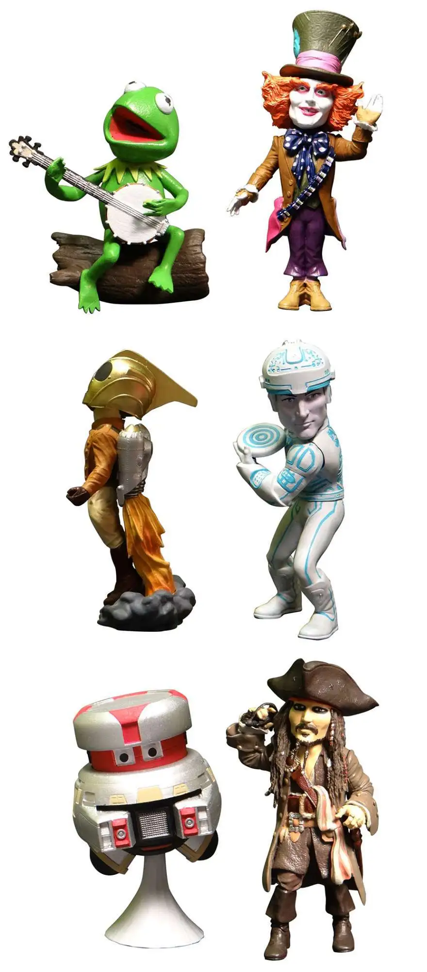 A Diamond Select Toys release! Time for Disney to D-Form! The D-Formz line of super-cute PVC figurines expands into the Disney Universe with this all-new assortment. Featuring stylized sculpts of Tron, Jack Sparrow, VINCENT, Kermit, the Mad Hatter and the Rocketeer, each approximately 3-inch figure comes packaged in a full-color blind box. With 12 figures in every counter display, you’re guaranteed to get two of each figure! Designed by Barry Bradfield, sculpted by Rocco Tartamella.