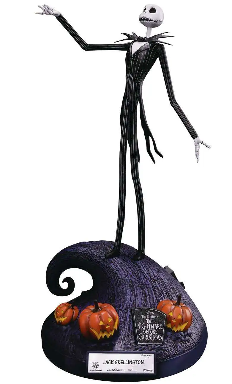 From Beast Kingdom. A PREVIEWS Exclusive! Who better to usher in the Holidays than Jack Skellington the Pumpkin King himself! A focus on details showcases Jack’s slender appearance and the diorama base boasts a bed of scary pumpkins that bring the scene to life! This stunning hand-made Master-Craft creation stands an amazing 15.5″ tall! Bring home this scene from the The Nightmare Before Christmas and catch your own little bit of magic today!