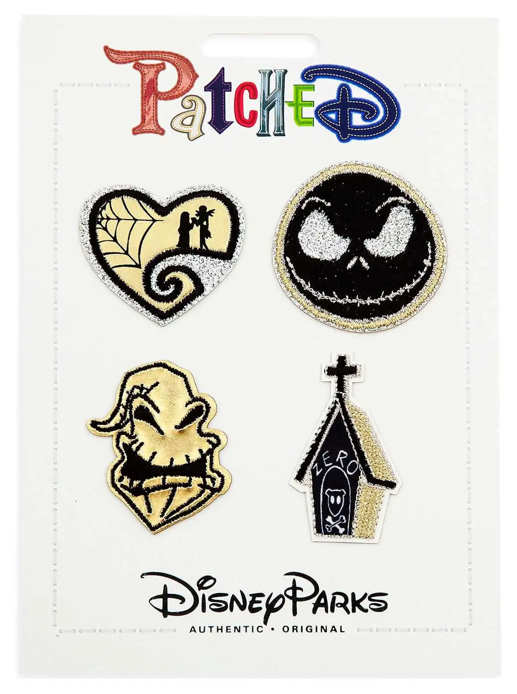 Embroidered Jack Skellington and Sally on Spiral Hill, Jack Skellington face, Oogie Boogie, and Zero’s doghouse