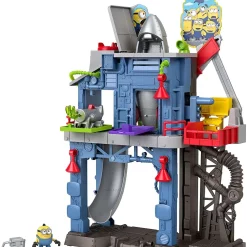 The Minion Lab is a playset that has a transforming rocket launching feature. The playset has two try-me features.Move the elevator up to raise the rocket through the roof of the playset and reveal a minion sign. The rocket is removable and can fit a figure inside. Press down on the power pad to open the Garage door and reveal a banana cannon. Other features include and small slide from the second floor of the playset into the lab. The toilet seat lid will open. An elevator can carry figures from the basement to the second floor. The playset includes one removable rocket that a figure can fit inside, one Minion figure and one banana stick projectile.buy = ‘Y’;