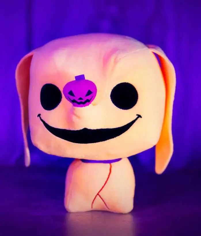 Greetings from your favorite residents of Halloween Town! Funko Plush Zero appears in vibrant coloring that is designed to shine brightly under blacklight. Hes thrilled to bring some frightful fun to your The Nightmare Before Christmas collection. Collectible plush is approximately 7-inches tall.