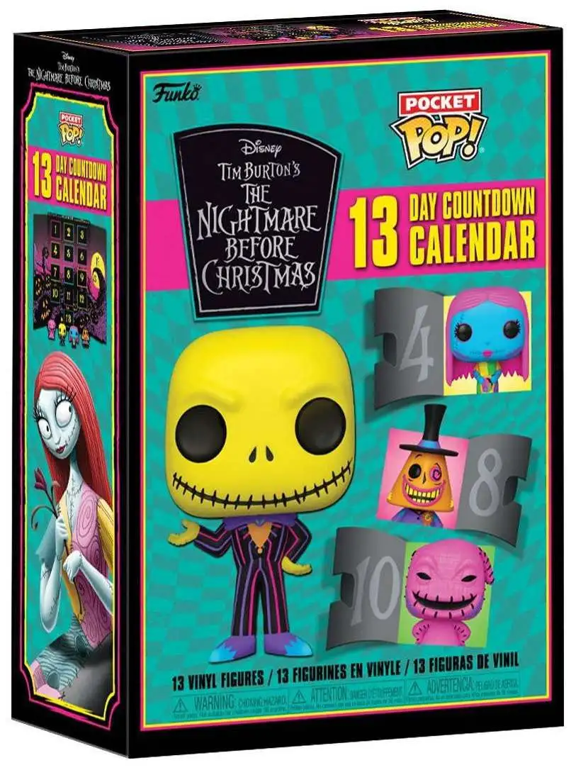 Count down to your favorite holiday, or any special occasion, with the Nightmare Before Christmas 13 Day Countdown Calendar! Open the tiny doors to reveal 13 unique Funko Pocket Pops! featuring some beloved residents from Halloween Town. Each figure has vibrant coloring that is specifically designed to shine brightly under blacklight. Who will be the next to join your The Nightmare Before Christmas collection? Pocket Pop! figures vary in height depending on character. The maximum figure height is 2-inches tall.