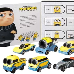 This Hot Wheels Minions Bundle is a thrilling 6-pack of rebellious character vehicles. Each car is inspired by the Minions globe-trekking adventures in Minions: The Rise of Gru. These inventive, movie-themed vehicles capture the epic tale. These iconic die-cast 1:64 scale vehicles are for collectors of all ages. Each model has exclusive deco and packaging. Each sold separately, subject to availability. Colors and decorations may var