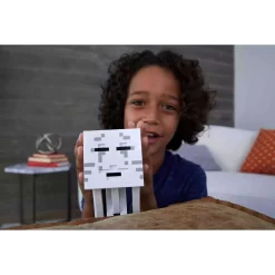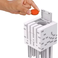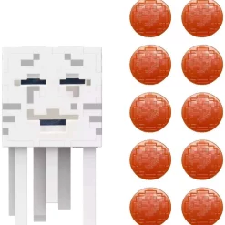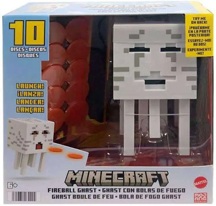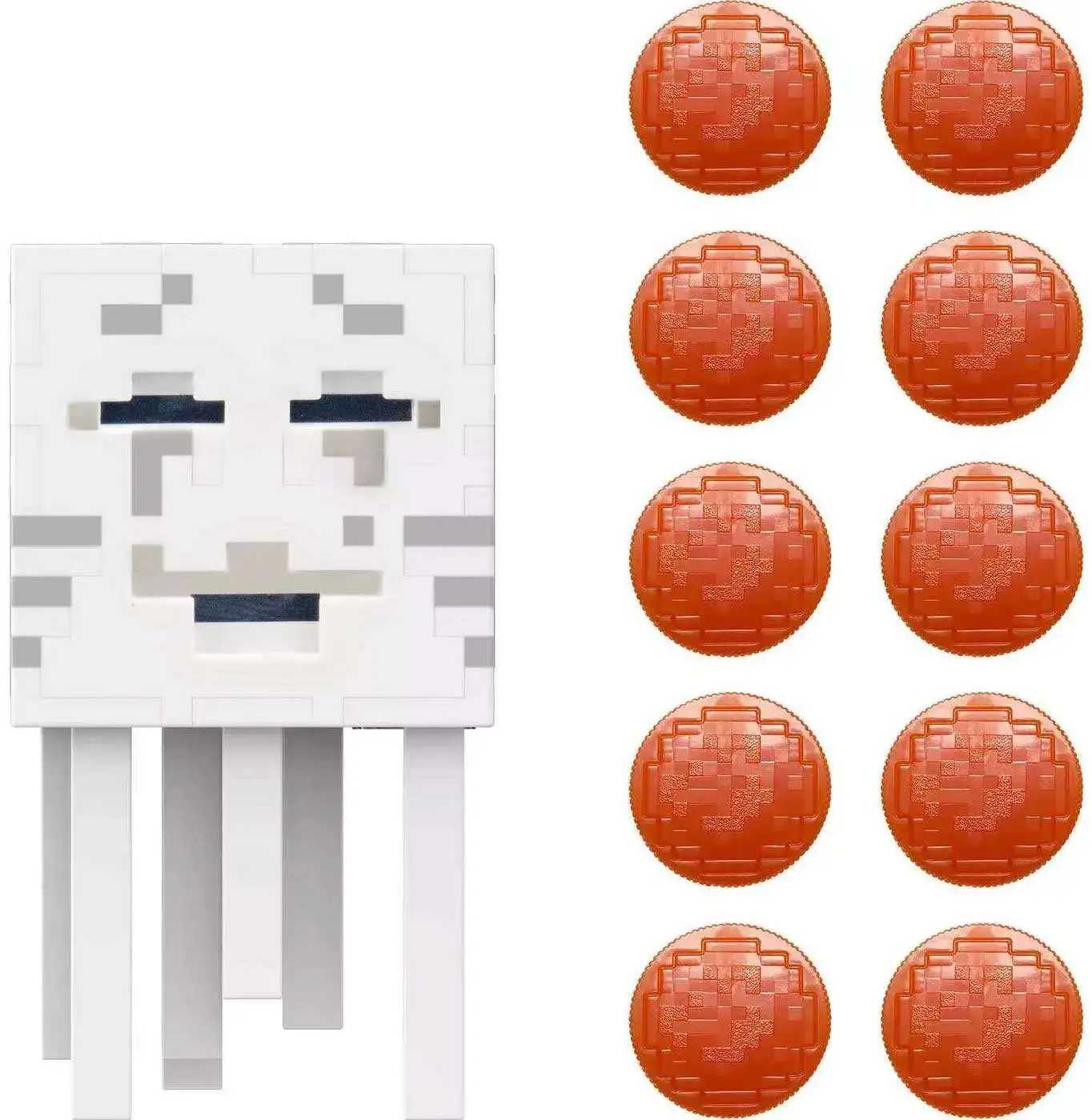 Ready, aim, fire! Load the 10 red “fireball” discs and use your hand to lift and hover the Ghast, a faithful re-creation of the eery and ghost-like hostile Minecraft mob that’s an all-time kid favorite. Players spot their prey, press the button and ZAPthe eyes change expression as the fearsome Ghast shoots a fireball disc out of its mouth! Leg dangle as Minecraft fans hold the figure and make their escape by “flying” through the Nether. Colors and decorations may vary.