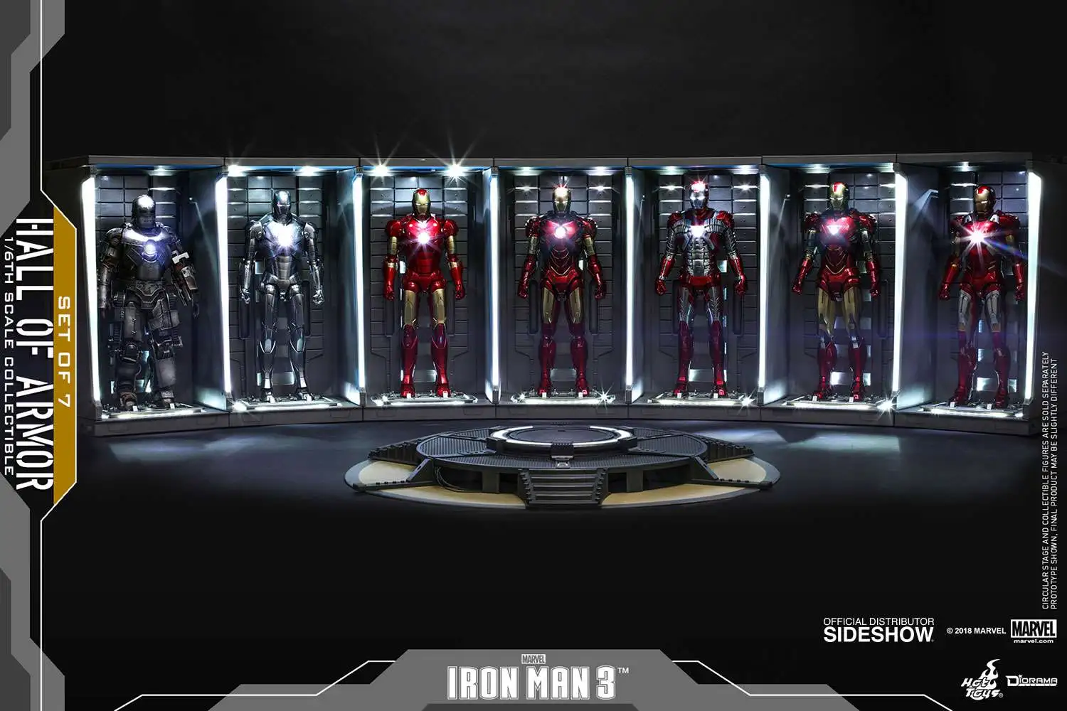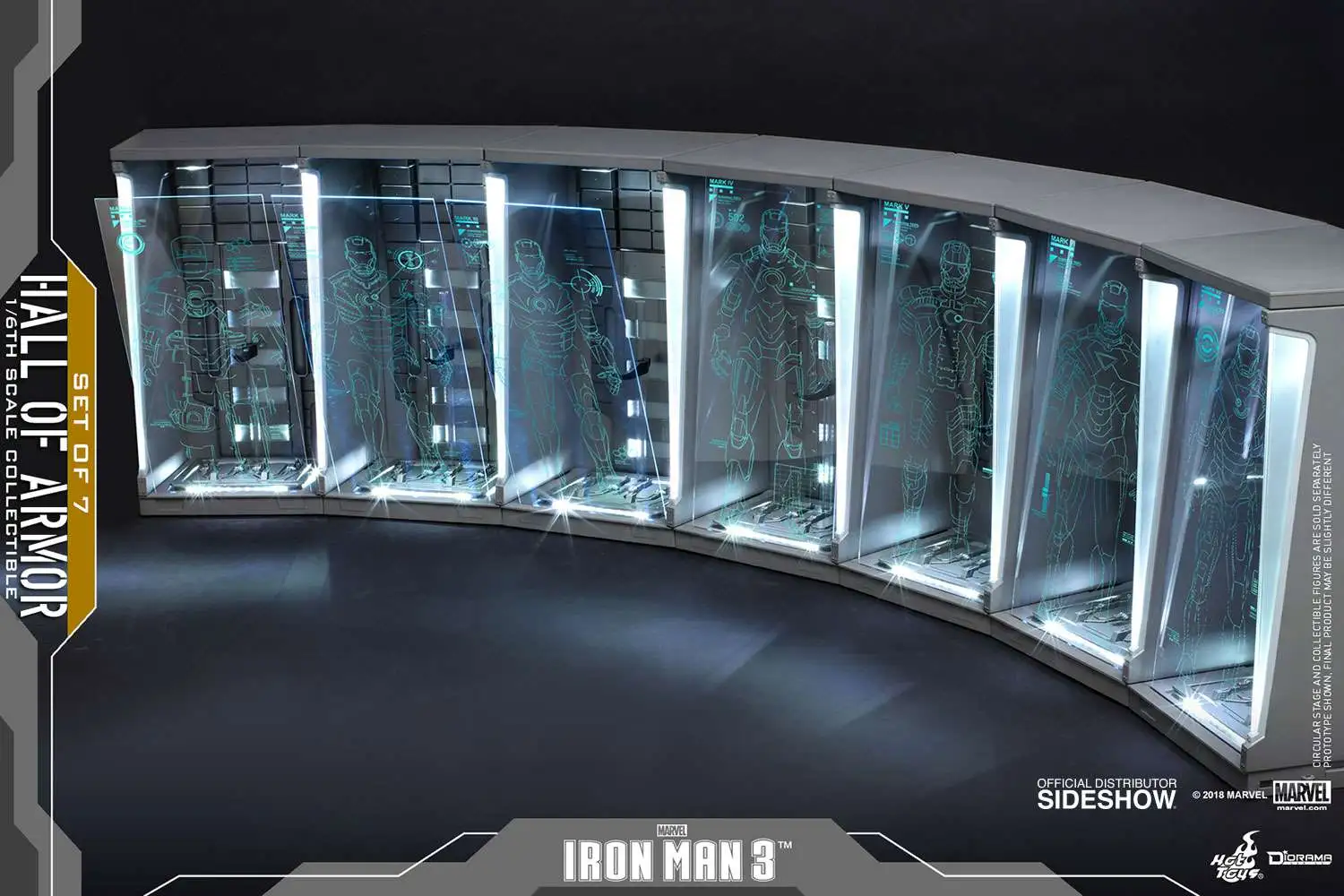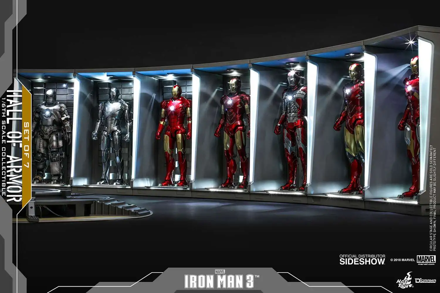 Sideshow and Hot Toys are excited to reissue the stylish sixth scale Hall of Armor (Set of 7) Collectible from the Diorama Series inspired by the movie Iron Man 3!