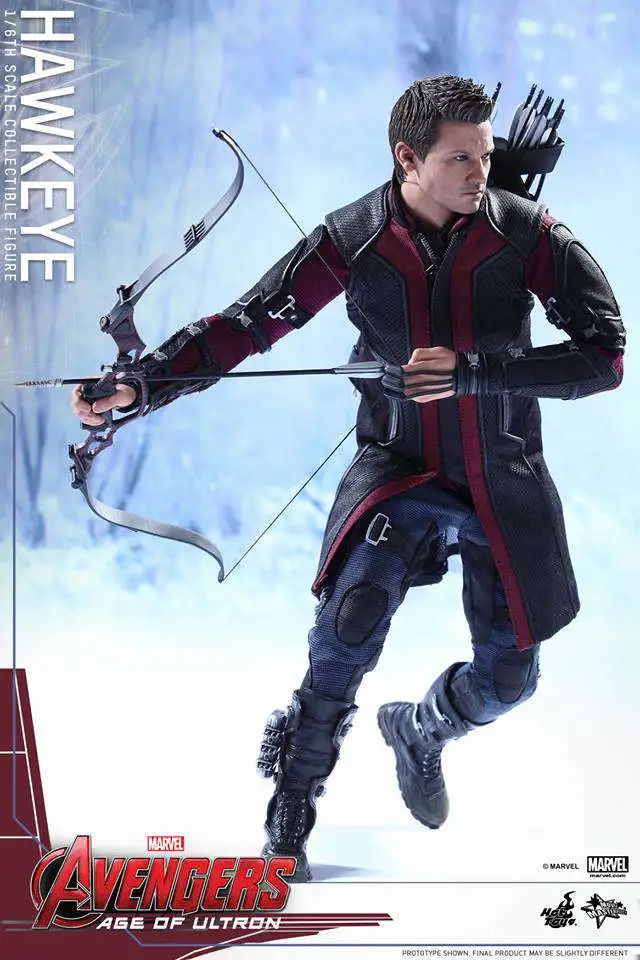 The movie-accurate Hawkeye Collectible Figure is specially crafted based on the image of Jeremy Renner as Hawkeye in Avengers: Age of Ultron, featuring a newly developed head sculpt, new outfit, improved articulations for action poses, freshly designed bow and arrows, and a specially designed figure stand.
