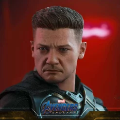 A newly developed head sculpt with authentic and detailed likeness of Jeremy Renner as Hawkeye from Avengers: Endgame