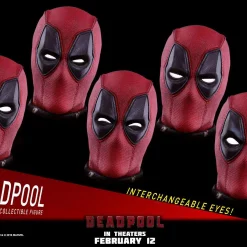 The movie-accurate collectible figure is specially crafted based on the image of Deadpool from the film. It features a newly developed masked head sculpt with 5 pairs of interchangeable eye pieces to create numerous combinations of Deadpools expressions, newly developed body, meticulously tailored Deadpool suit with weathering effects, Deadpools signature katanas and pistols, a variety of interchangeable hands with gestures, and a specially designed Deadpoolthemed dynamic figure stand perfect for aerial poses.
