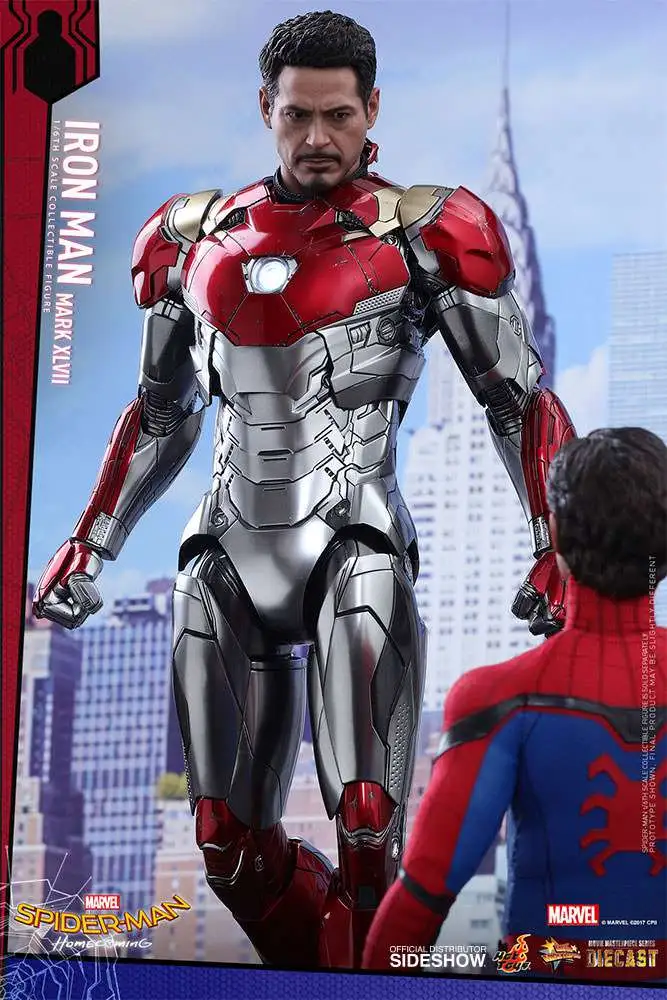 Following the events of Captain America: Civil War, Tony Stark took up the role as Peter Parkers mentor, guiding him to strike a balance between his dual identity of being a high school student and a superhero. With Spider-Man: Homecoming, Sideshow, and Hot Toys are very excited to present to you the latest Iron Man Mark XLVII as an addition to the Hot Toys MMS Diecast Series.