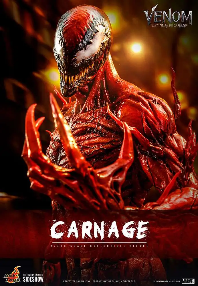 Watch out! The villain is here to unleash aggression and terror on the streets. Serial killer Cletus Kasady becomes the host of the symbiote Carnage and escapes prison after a failed execution. From Venom: Let There Be Carnage, Sideshow and Hot Toys present the Carnage Sixth Scale Collectible Figure, capturing the murderous, unhinged spirit that strikes fear into your symbiote collection.