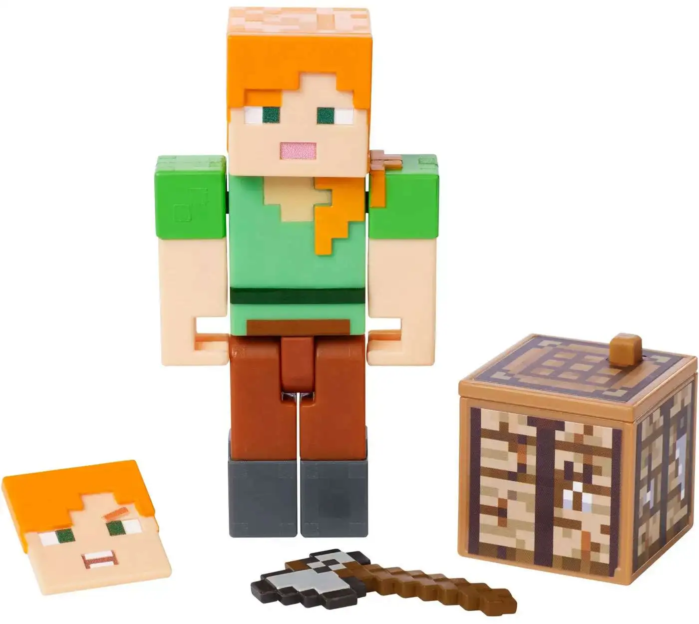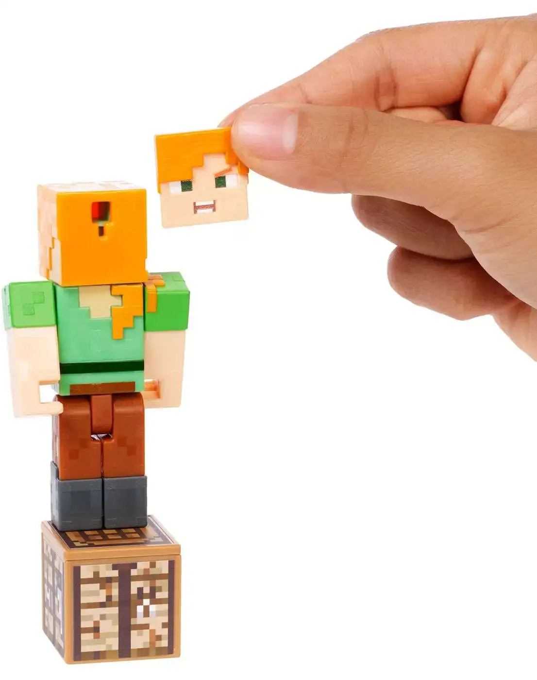 Create your own Minecraft comic book story with the Minecraft Comic Maker figures! And now for the first time, you can change the facial expressions on Minecraft characters thanks to dimensional, swappable faces! Each of these 3.25-inch figures comes with an accessory like tool or weapon and a biome block that turns into a stand for action posing. Block also has a scannable code that unlocks exclusive content in the free Minecraft Comic Maker App that you can download so you can add sounds and extra effects to your comic book scenes and stories! Figure has five points of articulation for expressive storytelling, and its joints “pop” for an even wider range of motion for arms and head. Minecraft lovers will go crazy for these characters and the app as they create their own stories and produce comic books starring their 3.25-inch Minecraft figures! Figures sold separately.