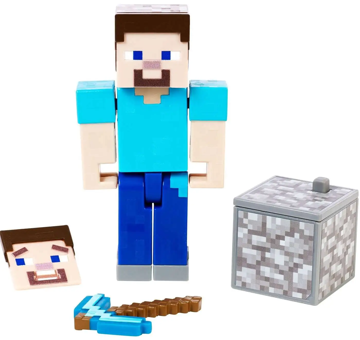 Create your own Minecraft comic book story with the Minecraft Comic Maker figures! And now for the first time, you can change the facial expressions on Minecraft characters thanks to dimensional, swappable faces! Each of these 3.25-inch figures comes with an accessory like tool or weapon and a biome block that turns into a stand for action posing. Block also has a scannable code that unlocks exclusive content in the free Comic Maker for Minecraft app that you can download so you can add sounds and extra effects to your comic book scenes and stories! Figure has five points of articulation for expressive storytelling, and its joints “pop” for an even wider range of motion for arms and head. Minecraft lovers will go crazy for these characters and the app as they create their own stories and produce comic books starring their 3.25-inch Minecraft figures! Figures sold separately.