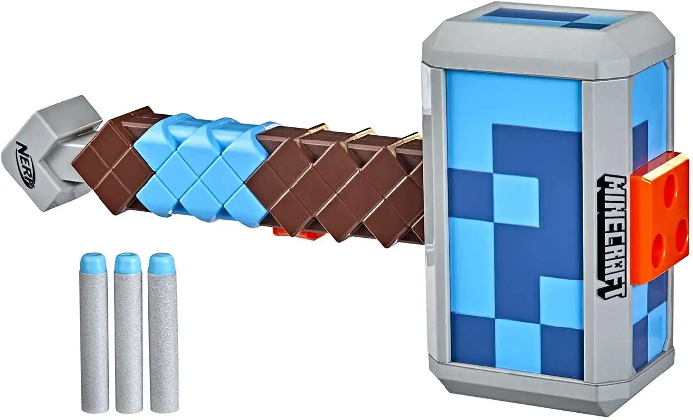 NERF MINECRAFT STORMLANDER HAMMER: This dart-firing Nerf Minecraft hammer takes its inspiration from the hammer in Minecraft: Dungeons