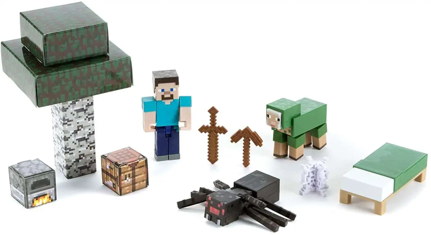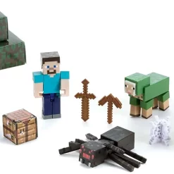 Bring Minecraft to life with this exciting story pack! It’s Steve’s first day in the Overworld, and he needs a bed. And some wool! And to avoid the Spider! This exciting Minecraft Adventure Pack include three 3.25″ figures and additional pieces to recreate a Minecraft player’s first day in the Minecraft Overworld! It’s a great story pack for imaginative Minecraft fans who love adventure! Other story sets available, sold separately. Colors and decorations may vary.