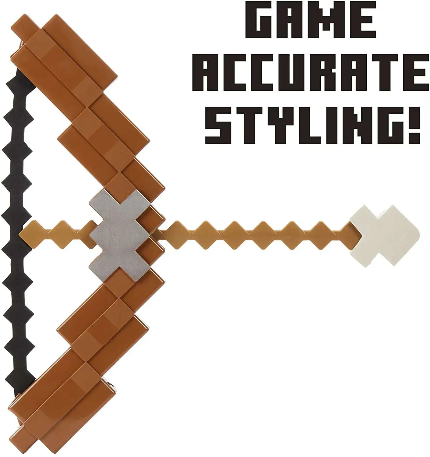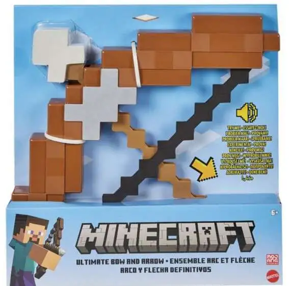 Pull back the bowstring, CREEAAK!, and fire THWUNK! ARRGH! Minecraft comes to life with this player-sized Ultimate Bow and Arrow set that makes game-accurate shooting sounds. This fan-favorite accessory looks just like the weapon that Minecraft gamers craft to fend off attacks by evil mobs! Players will have a blast battling each other offline or using the electronic toy to knock down their Minecraft figures.