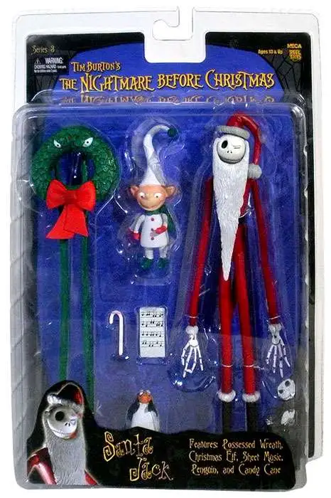 From the Nightmare Before Christmas Collection. Nightmare Before Christmas Series 3 Action Figures. Series III includes Cyclops with large elf, Werewolf with small elf, Santa Jack with evil wreath and an all new Sally with sewing machine. Each figure is highly detailed and fully posable with loads of accessories.