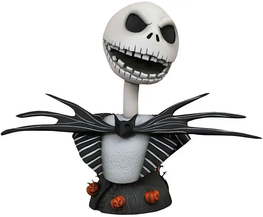Let the festivities commence! Jack Skellington comes to life and life-size with this first-ever half-scale bust based on the acclaimed stop-motion film, Tim Burtons The Nightmare Before Christmas! Measuring approximately 10 inches tall, this museum-quality resin bust is limited to only 1,000 pieces and comes packaged with a certificate of authenticity in a full-color box. Designed by Joe Allard, sculpted by Joe Menna!
