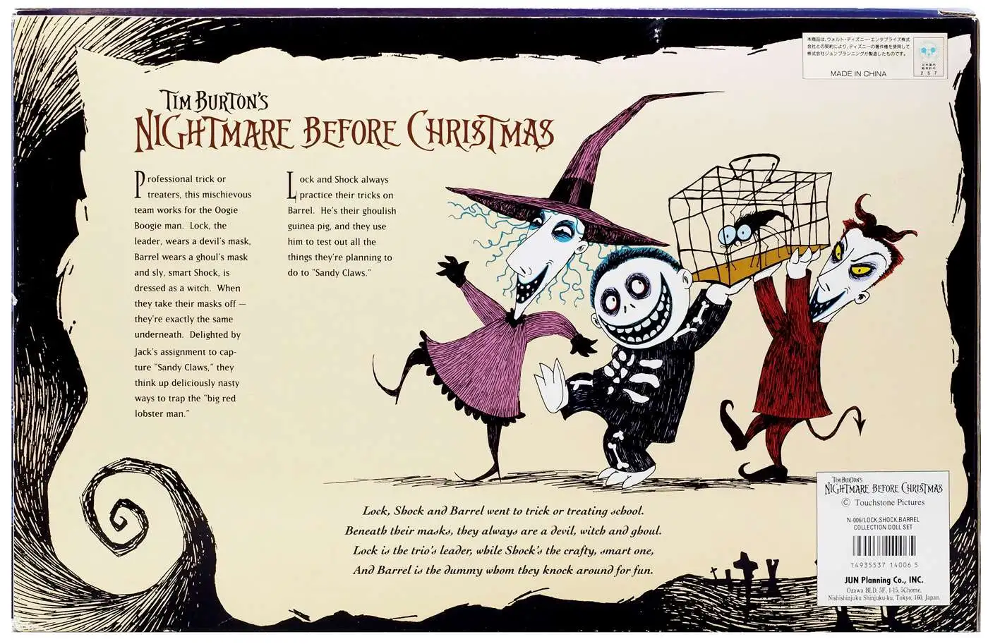 Lock and Shock always practice their tricks on Barrel. He’s their ghoulish guinnea pig, and they use him to test out all the things they’re planning to do to “Sandy Claws.”