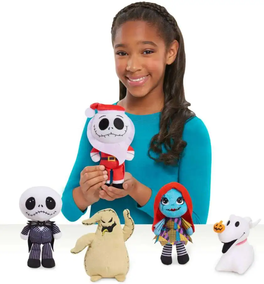 Celebrate a happily-ever-(after)life with Disney Tim Burtons Nightmare Before Christmas Small Plush Box Set, featuring Jack Skellington, Sally, Zero, Oogie Boogie, and Santa Jack. Fans of all ages are simply dying to give the heroes of the spooktacular classic film a warm seasonal snuggle. Sculpted from soft fabrics, this set of characters is all decked out and ready for fun. Each character brings spine-tingling holiday warmth as cherished seasonal dΓ©cor items and delightful playmates. For a howling good holiday, collect additional Disney Tim Burtons Nightmare Before Christmas cute plushies and stuffed animals (each sold separately). These snuggly preschool toys make ideal holiday gifts for kids and fans ages 3 years and up.